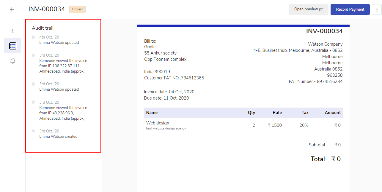 Audit Trail | Know what happened with your Invoice